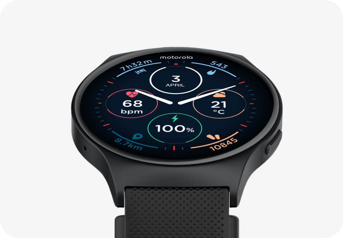 Track longer, charge less. With up to 10 days of battery life and rapid charging, your Moto Watch 120 delivers precise tracking without battery anxiety.
