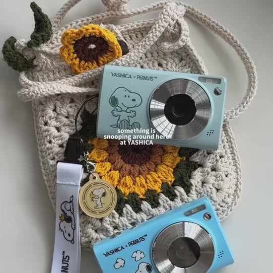 See life through Snoopy’s lens with the YASHICA x Peanuts Digital Camera, where classic comic whimsy meets modern digital convenience. This stylish, pocket-sized camera is a must-have for Peanuts fans of all ages, available in charming Blue Sky and Sage Green editions featuring iconic Snoopy artwork.